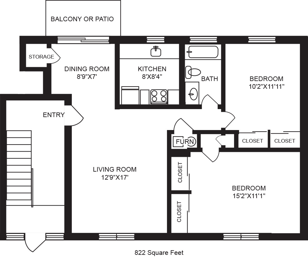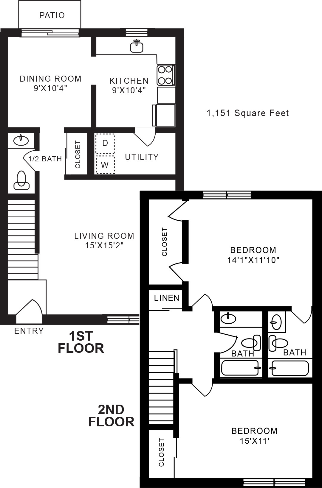 Two Bedroom Townhouse, Two Full and One Half Baths